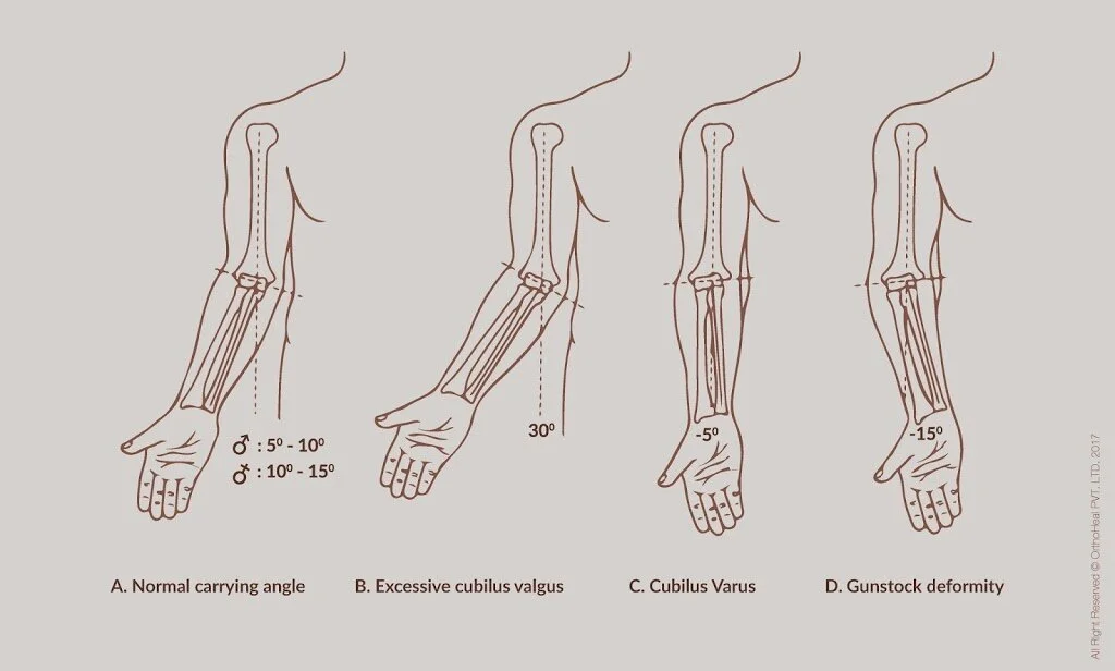 2. Since women typically have a larger valgus deviation than men, they are also more susceptible to elbow strain especially on the inside (medial side) of the elbow where the wrist flexors insert as the forces are more pronounced across the elbow joint.